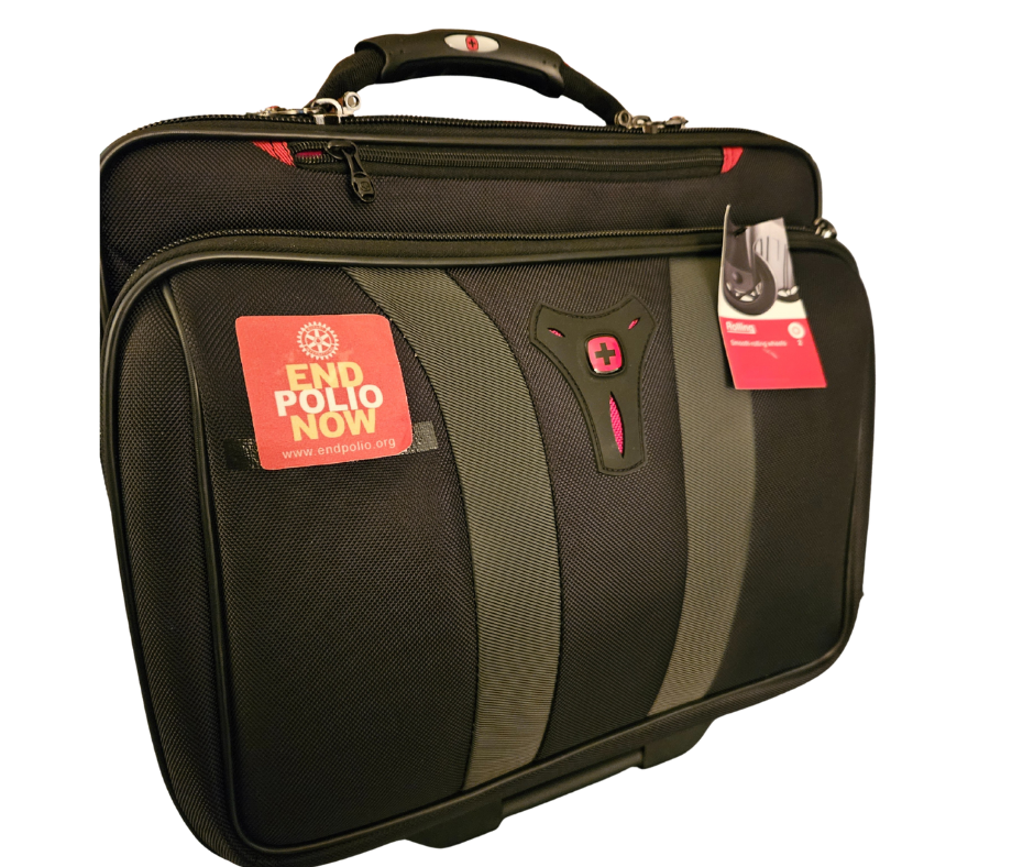 This Granada, 17" Wheeled Laptop Case has insulated sections to protect your laptop and it comes with an overnight compartment for clothes. Thank you Malcolm Cocks for this donation.